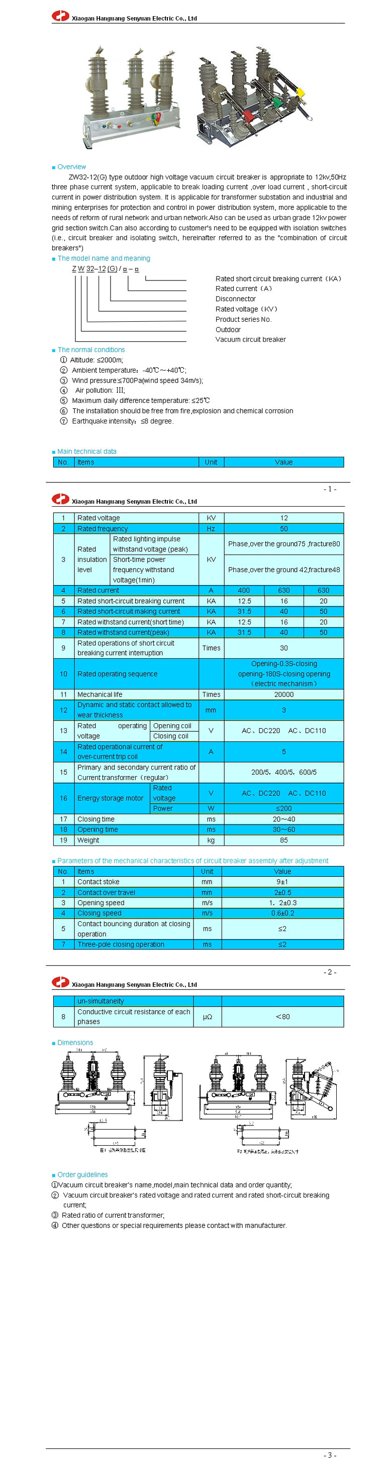 | ZW32-12(G) outdoor high voltage vacuum circuit breaker | |