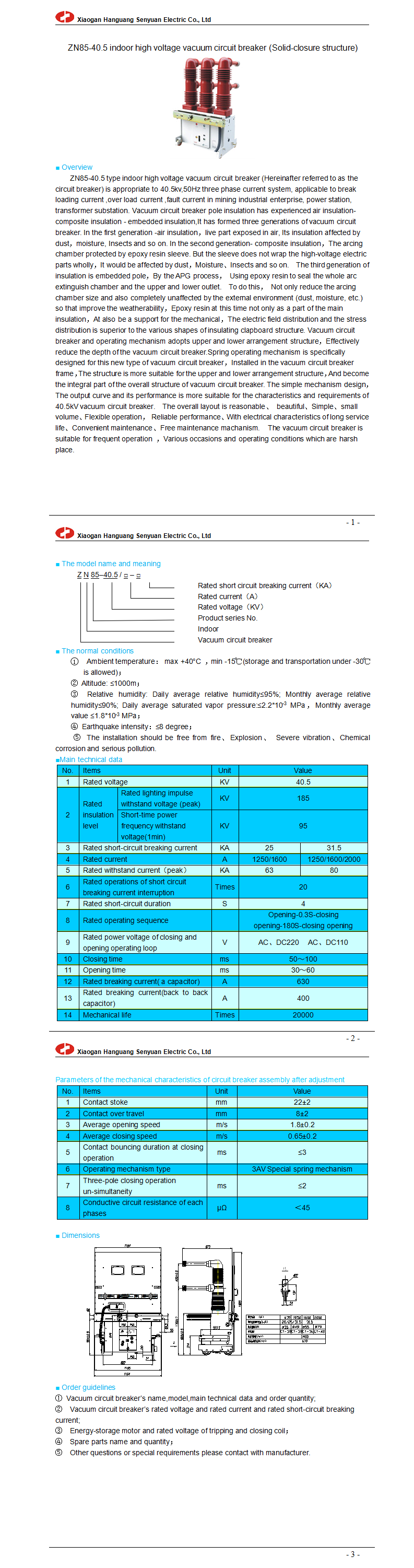 | ZN85-40.5 indoor high voltage vacuum circuit breaker (Solid-closure structure) | |